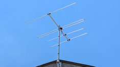 八木式のあんてなになります。ポールに上って新しいアンテナを可や山の方向に向けて受信レベルを測り取り付けします。